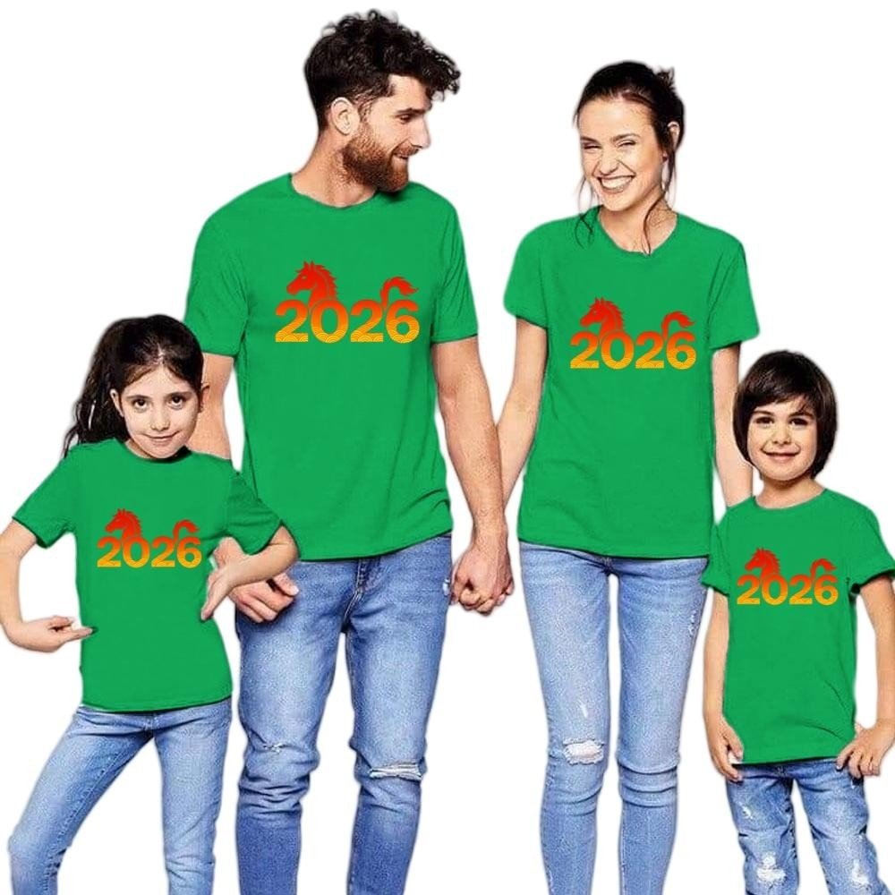 , these shirts are soft, breathable, and stretchable, ensuring maximum comfort for both adults and kids. The vibrant design symbolizes energy, strength, and new beginnings, making them an ideal choice for celebrating the New Year in style.